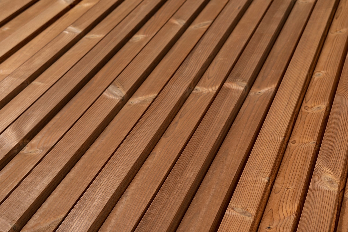 Naravni videz termično obdelanega bora je zlato rjave barve. Termična obdelava poskrbi za desetletja trajajočo odpornost proti gnilobi in to povsem brez kemikalij.